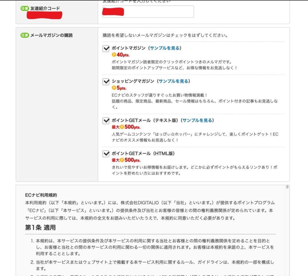 バーナーから登録した場合自動で入っているとは思いますが、ここを消してしまうと紹介で入会したことにならず、1500pAmazonギフトなど特典がもらえなくなる場合があります。気をつけましょう!