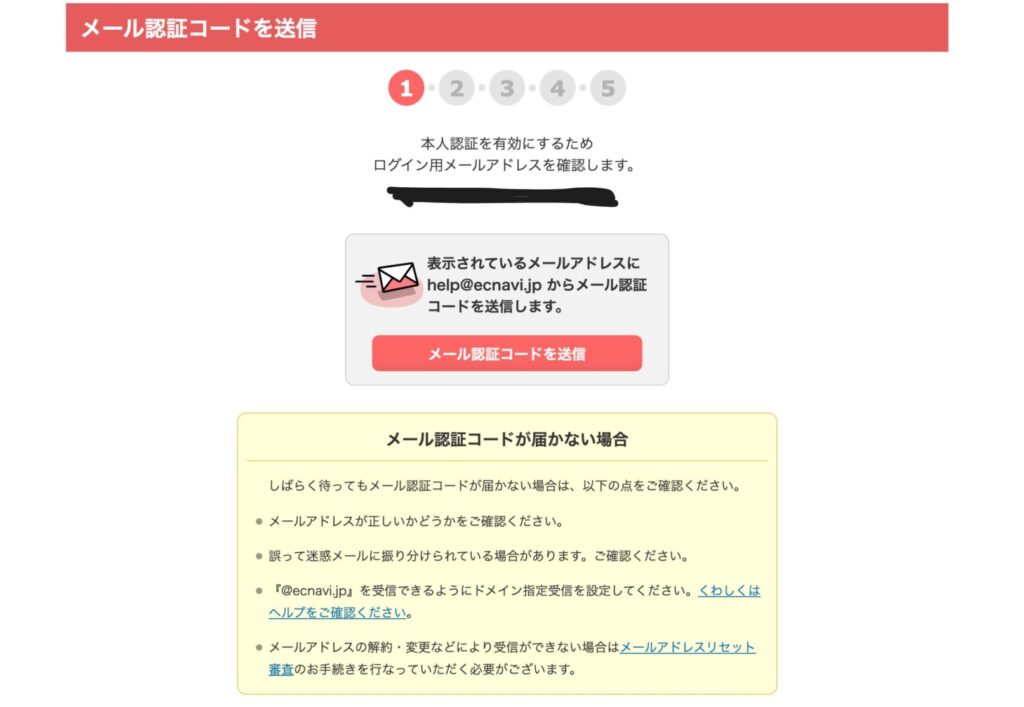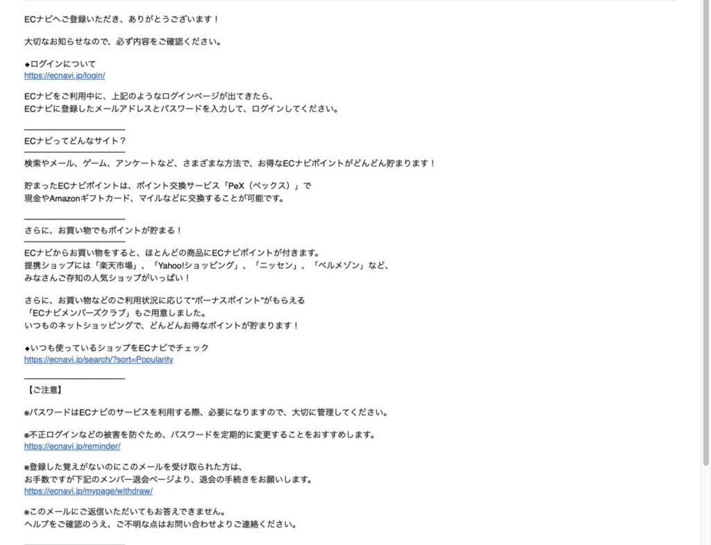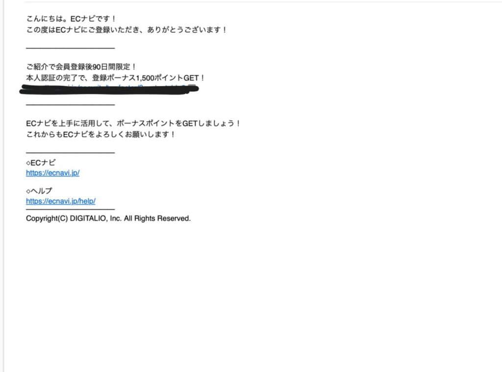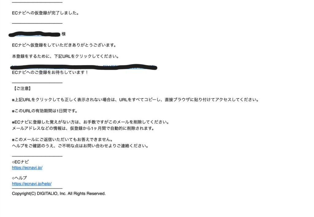メイルアドレス送信後ECナビから仮登録のメールが届くので確認してみましょう。