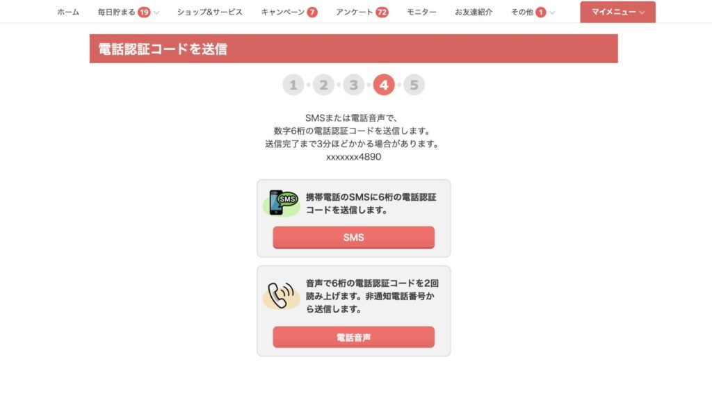 私は携帯電話のSMSに6桁の電話認証コードを送信するを選択しました。
