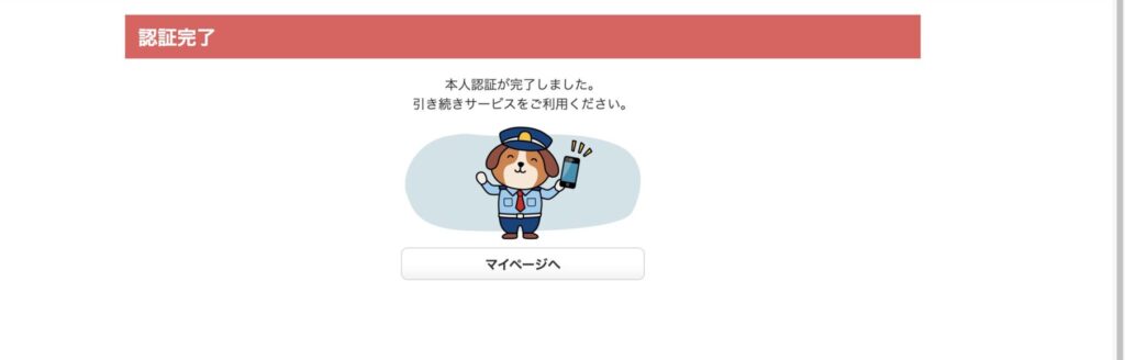 メッセージにて認証コードが来ますので6桁の数字を記入して「次へ」をクリックします。完了したら下のような画面が出てきて全て完了になります。